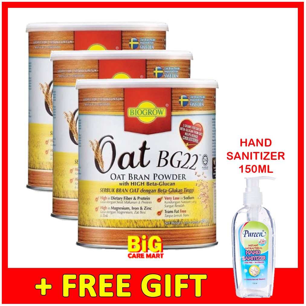 Biogrow Bg22 Oat Powder 480g X 3 Tins Free Hand Sanitizer Shopee Malaysia